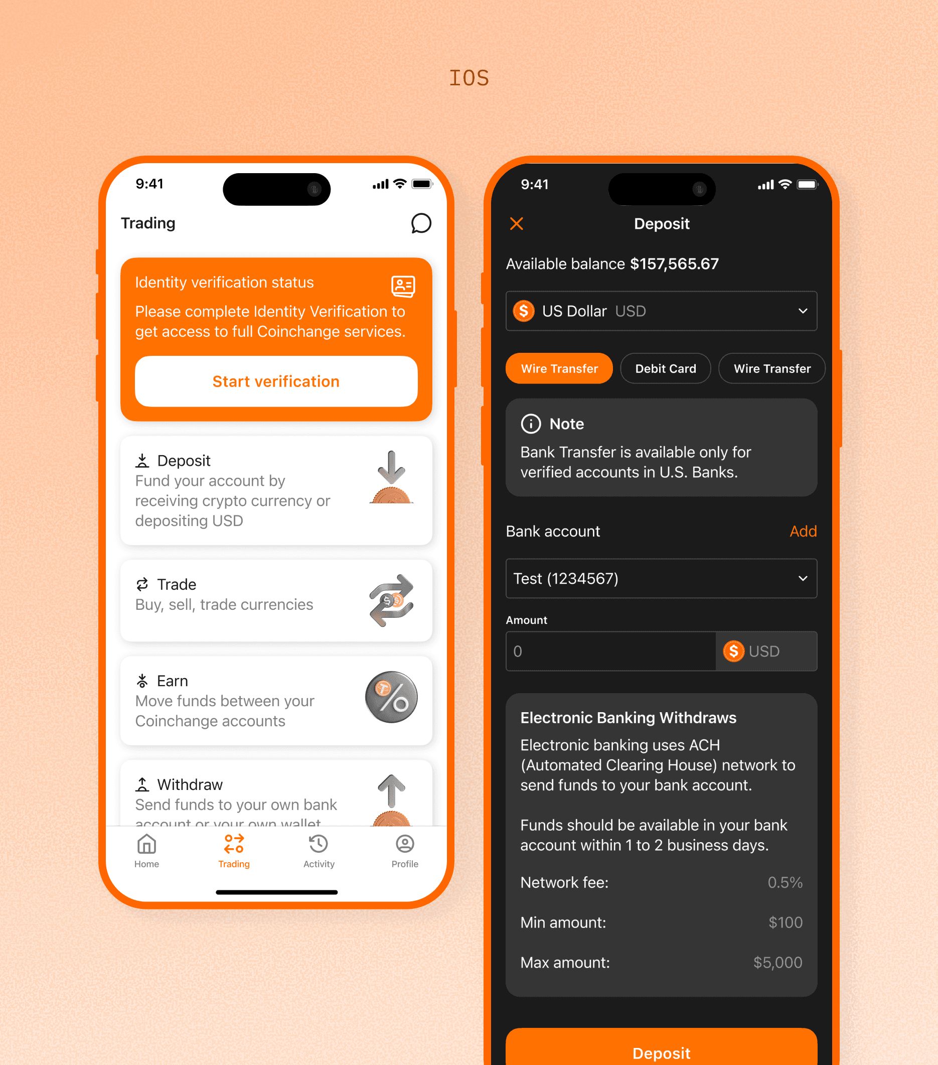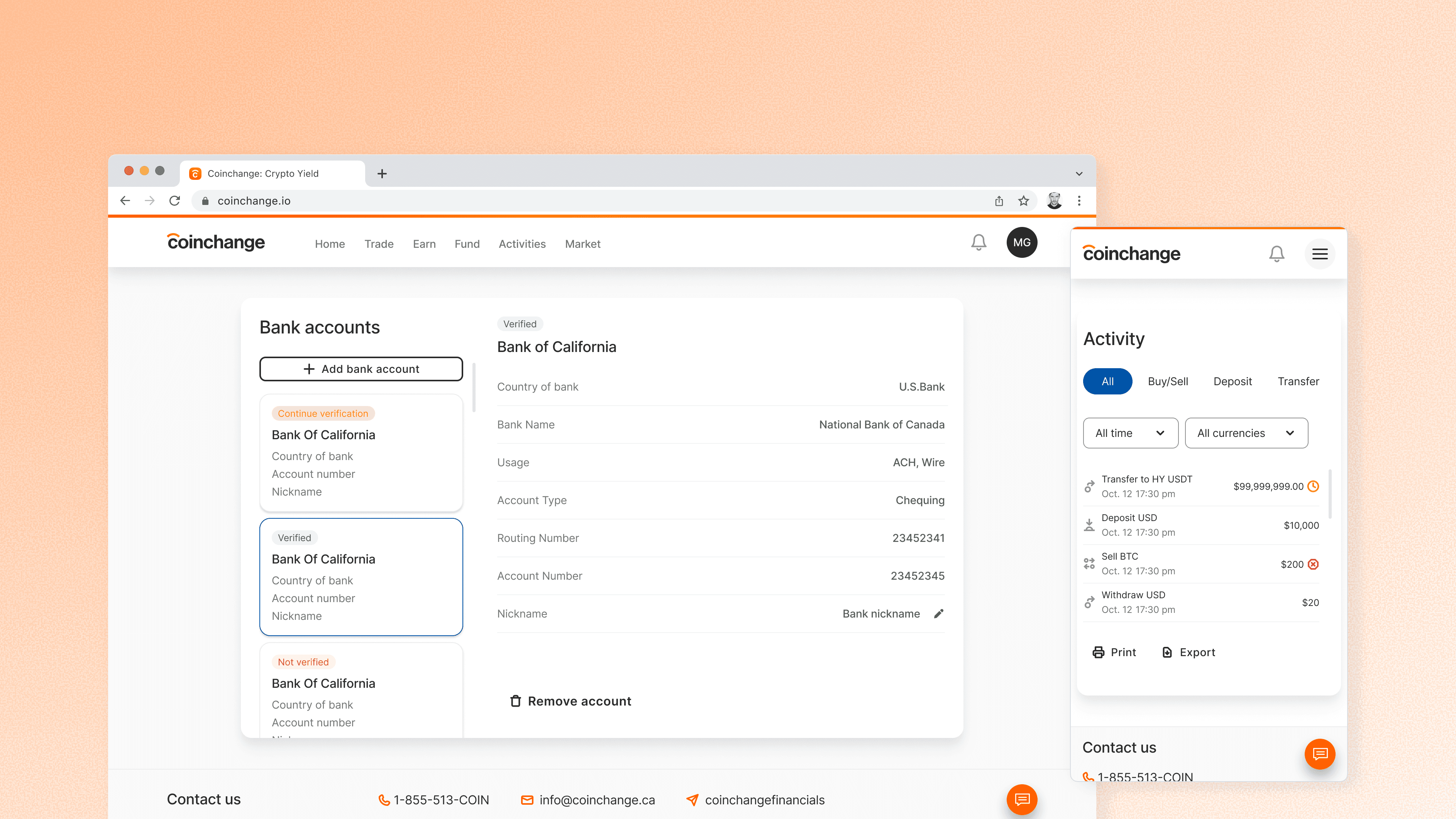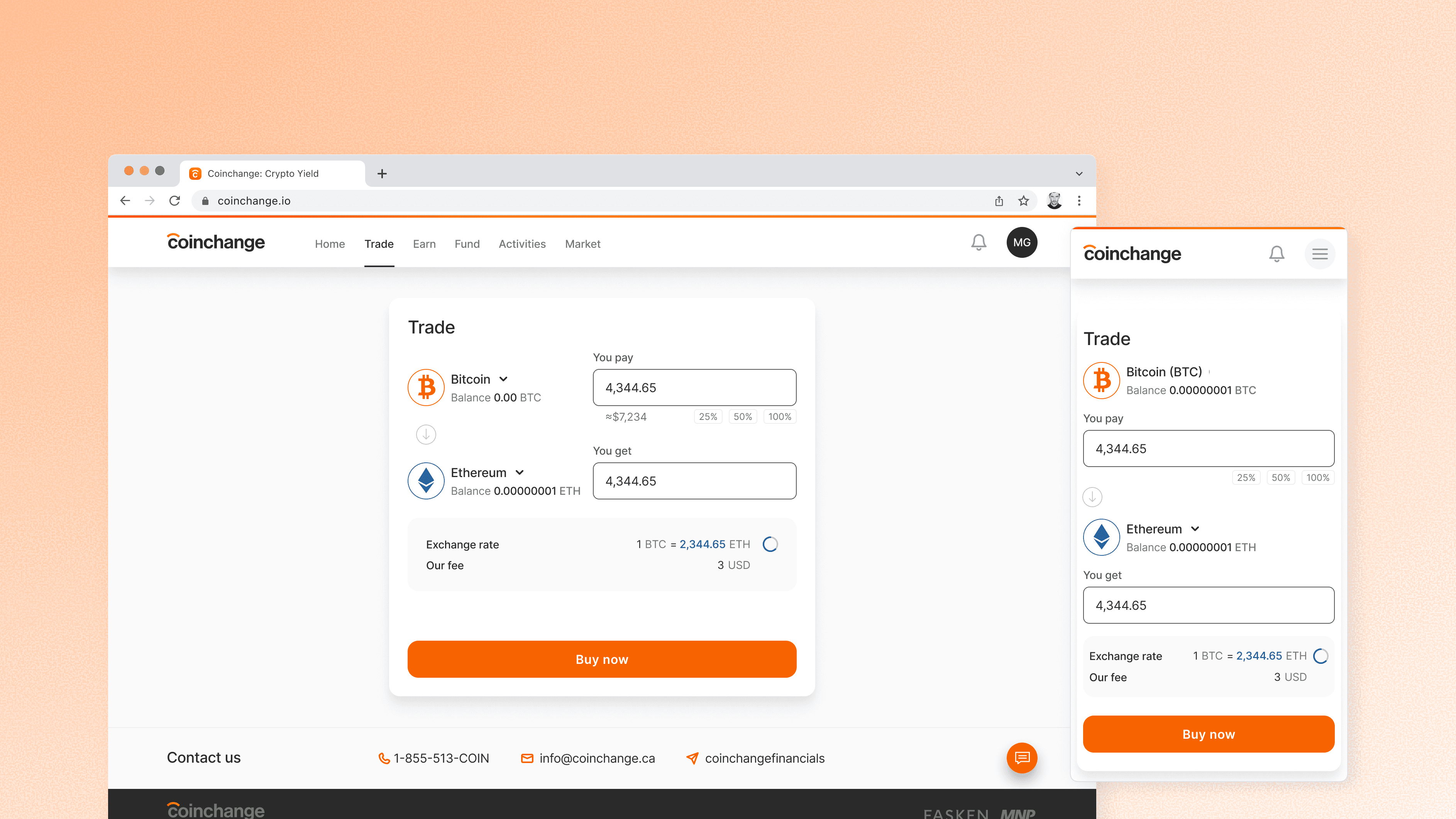 Coinchange started as a crypto brokerage and was pivoting into yield, which meant the product needed to serve two very different jobs: a trading account for buying and selling crypto with fiat on/off ramps, and an earn account that abstracted away all the DeFi mechanics behind a clean, trust-building interface.