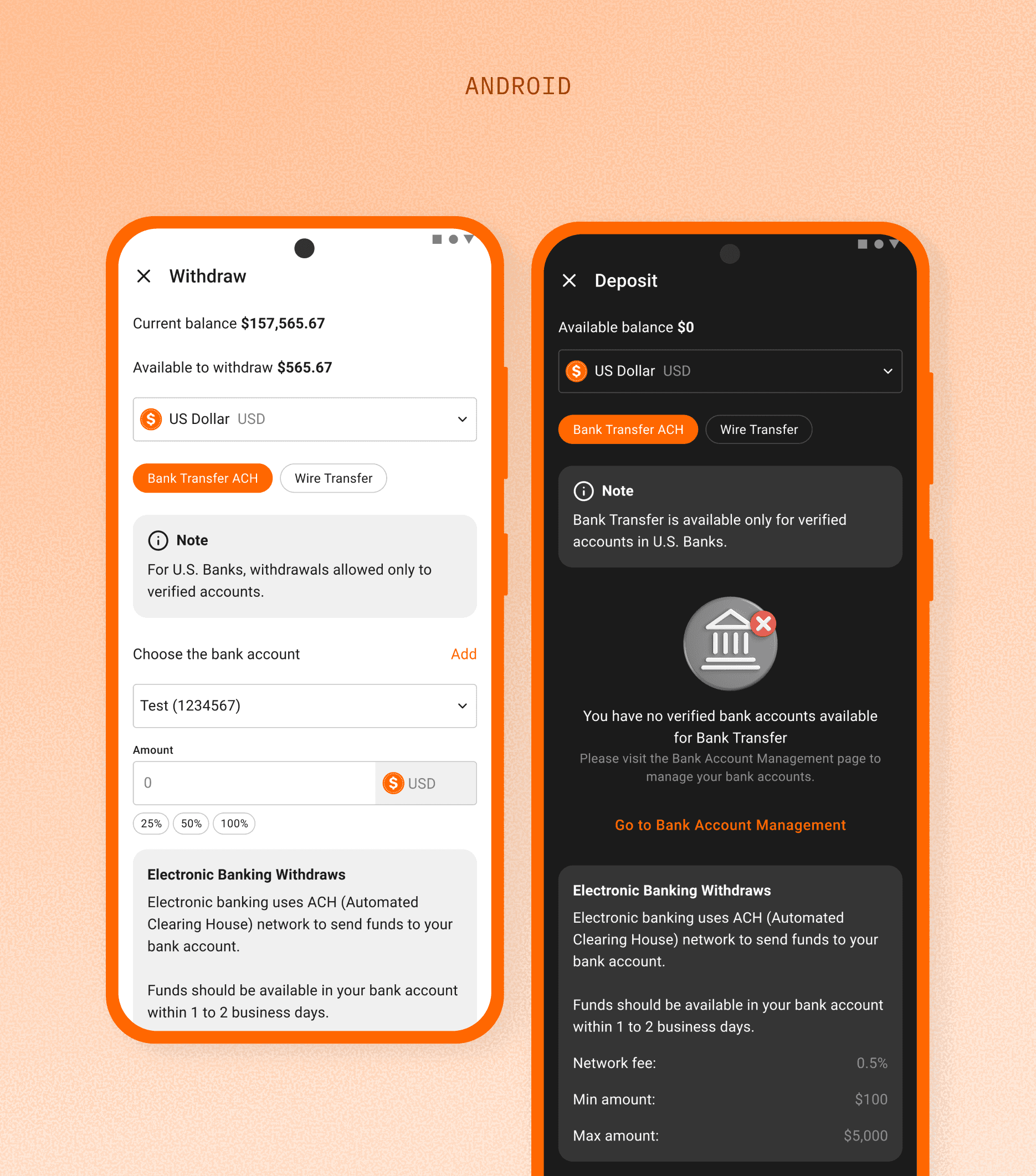 The design system and product patterns I established across desktop and mobile became the foundation that the company still builds on as they've expanded into API integrations, vault widgets, and white-label solutions for fintech partners. The mobile apps brought the full trading and earning experience to a format that felt native and trustworthy, not like a shrunken web dashboard.