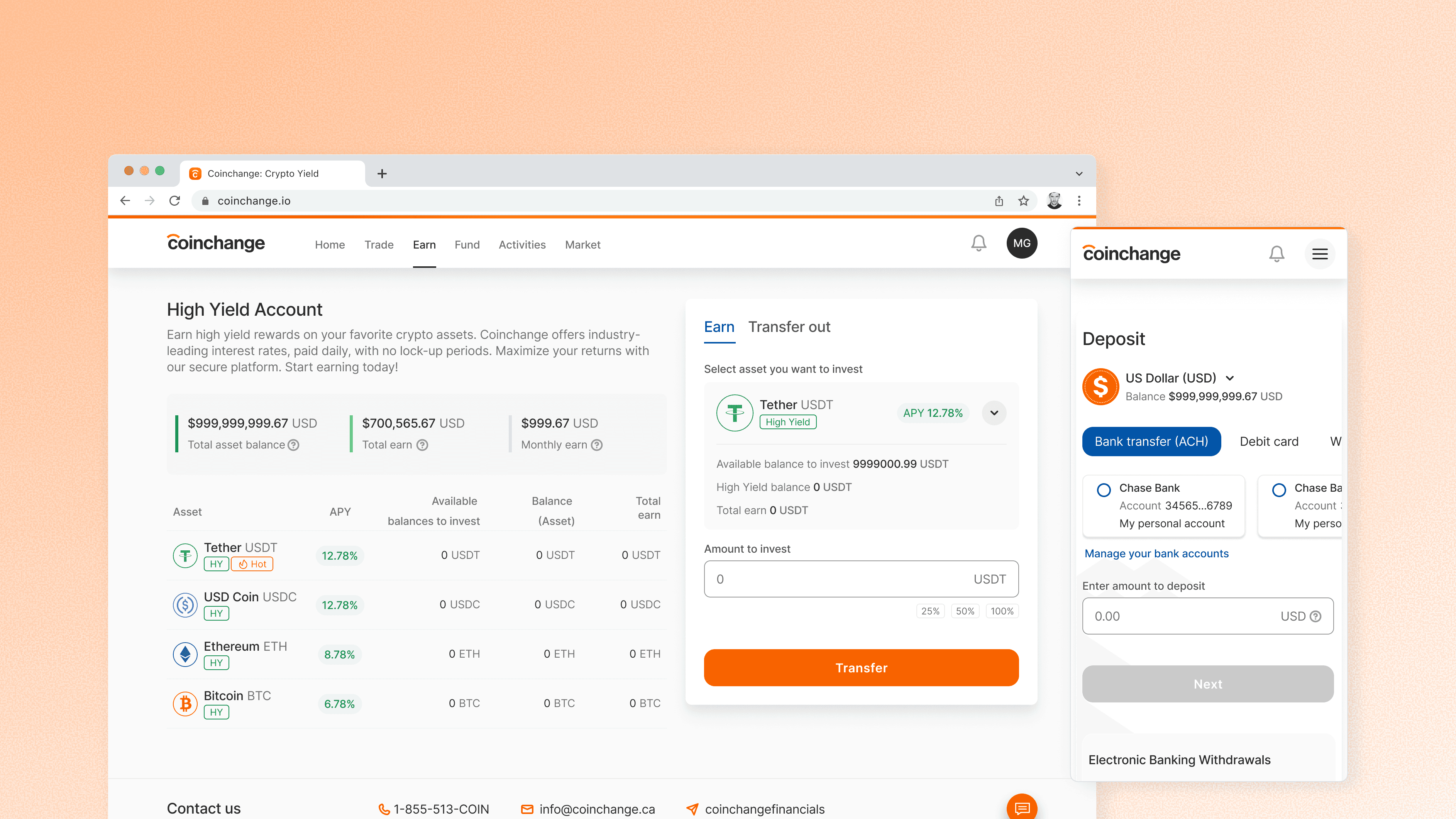 Coinchange is a Toronto-based crypto yield platform that makes DeFi accessible to everyday users and institutions. The platform lets people deposit crypto or fiat and earn compounding returns through algorithmically managed yield strategies across multiple DeFi protocols and blockchains.