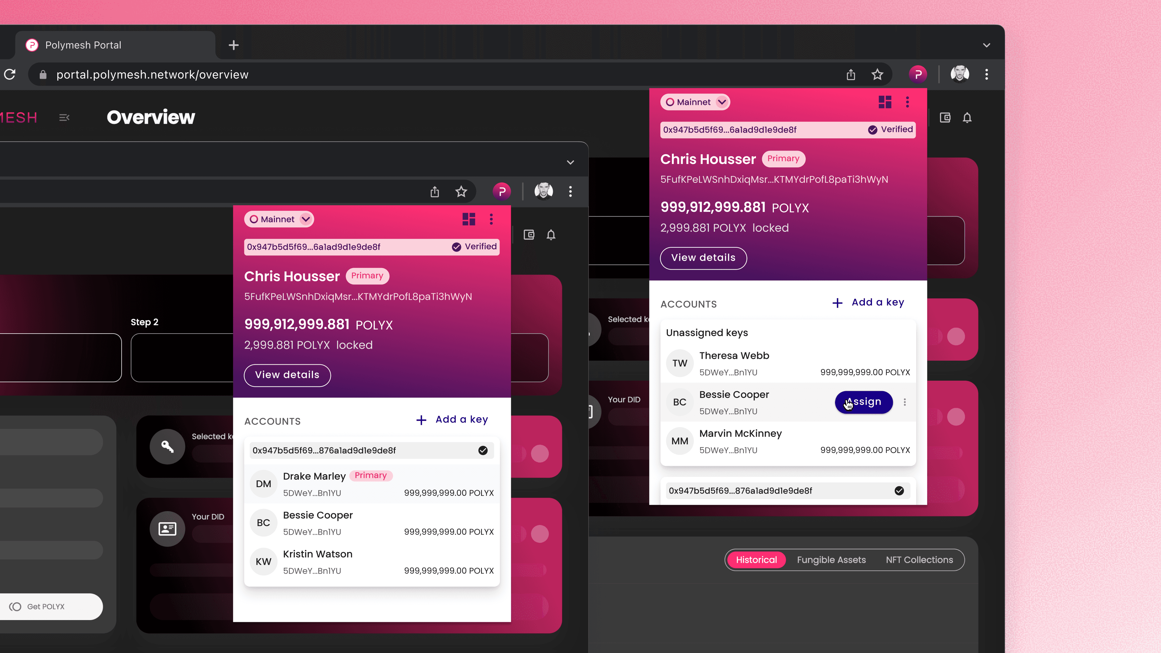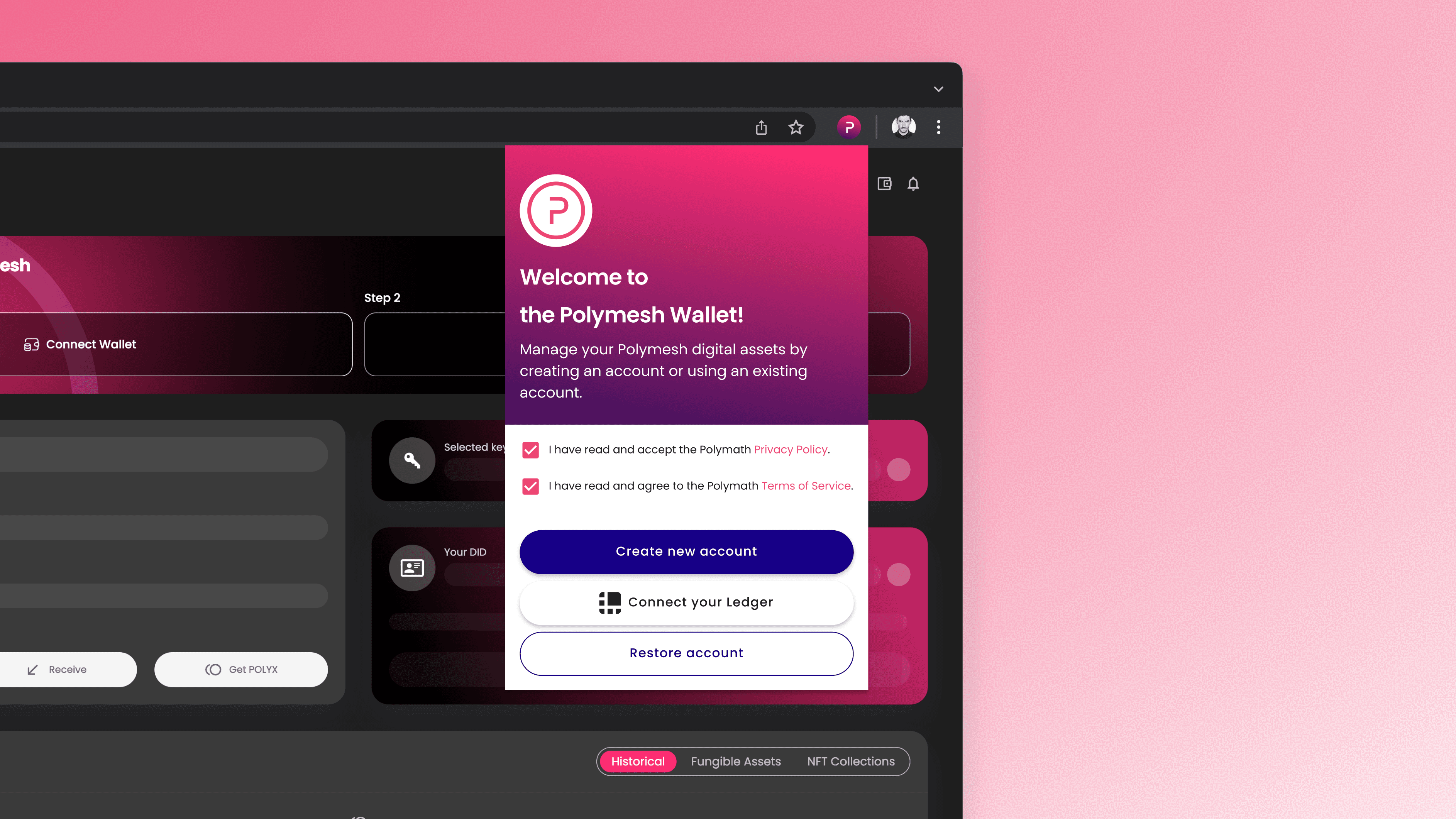 The Wallet Extension became the default entry point for Polymesh users, handling everything from onboarding to daily transaction signing. The POLY to POLYX bridge was used by over 6,000 users to migrate their tokens from Ethereum to the Polymesh chain, with a smooth conversion experience that helped drive early network adoption without support escalations.